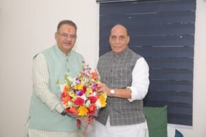 देश के रक्षा मंत्री राजनाथ सिंह से कैबिनेट मंत्री गणेश जोशी ने शिष्टाचार भेंट की