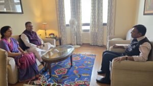 देहरादून, 11 जुलाई। प्रदेश के कृषि एवं ग्राम्य विकास मंत्री गणेश जोशी ने मसूरी में केंद्रीय श्रम एवं रोजगार तथा युवा मामले एवं खेल मंत्री डॉ. मनसुख मांडविया का उत्तराखण्ड आगमन पर स्वागत एवं अभिनंदन किया। उन्होंने हाउस ऑफ हिमालयास के स्थानीय उत्पादों से निर्मित किट भी भेंट की। इस दौरान मंत्री जोशी ने केंद्रीय खेल मंत्री से मसूरी भिलाड़ू में बहुप्रतीक्षित खेल मैदान के लिए भी केंद्र का सहयोग मांगा। केंद्रीय मंत्री डॉ. मांडविया ने इस पर सकारात्मक रुख अपनाते हुए हरसंभव सहयोग का आश्वासन दिया।