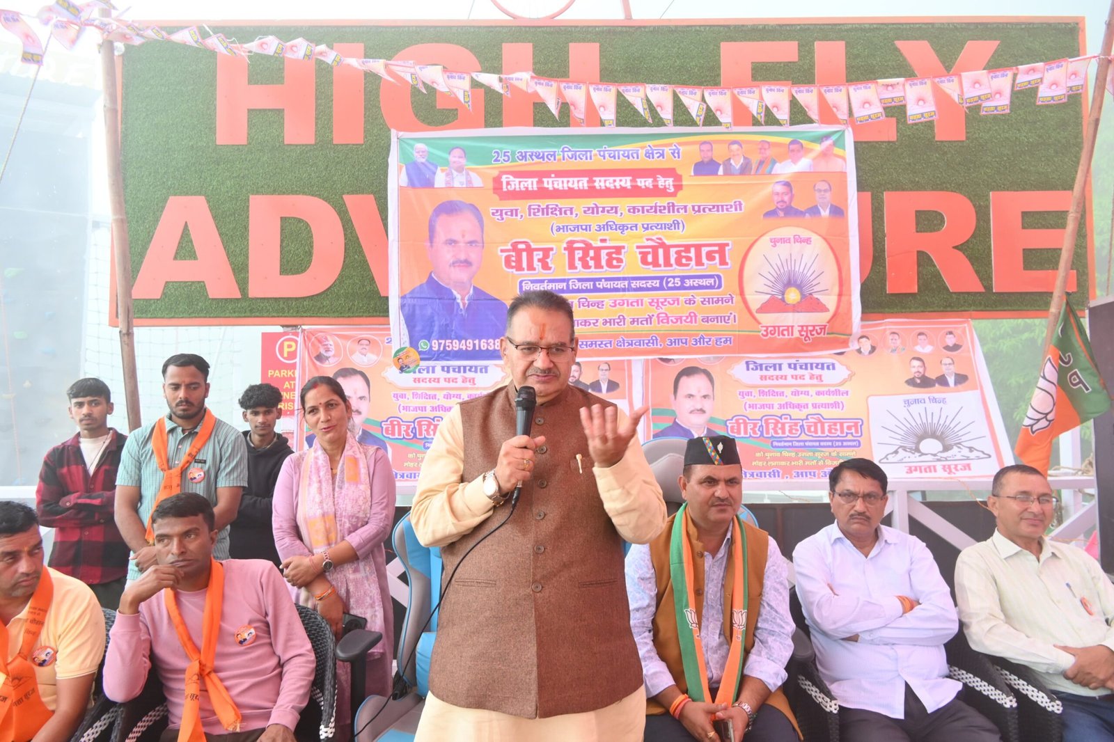 भारी बारिश की बाधा को दरकिनार कर मंत्री गणेश जोशी ने जनसभा को किया संबोधित, भाजपा प्रत्याशी बीर सिंह चौहान के समर्थन में ग्रामीणों से की भारी संख्या में मतदान की अपील